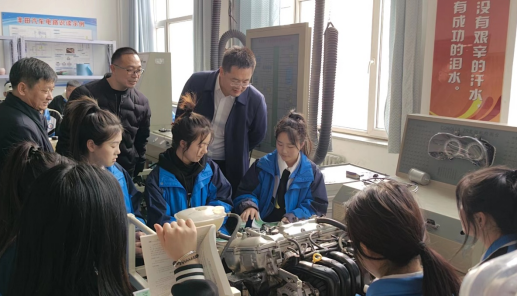 参观青龙满族自治县职业技术教育中心汽车实训室并与学生进行交流