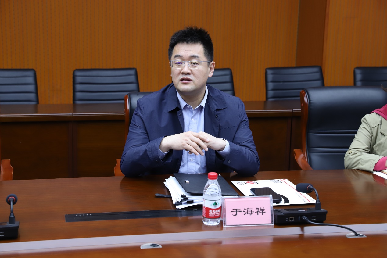 在参观学校实训中心后,我校与青龙职教中心同仁开展座谈交流。会上,于海祥校长首先代表学校对何占仕校长一行表示热烈欢迎,介绍学院情况、培养目标、办学特色和专业建设情况,并表达了未来与青龙职教中心开展合作共建的期待。