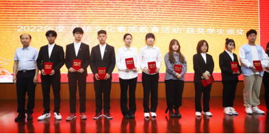 学院学生工作部部长张娟宣布了 2022年传统文化教育活动“中华经典诗文诵读”大赛、“身边最美劳动者摄影”比赛、“银幕上的红色经典”写作大赛、“京剧脸谱创意”比赛获奖学生名单,副院长唐东存为获奖学生颁发证书。