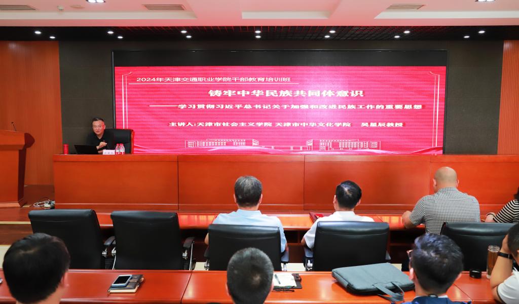 为深入贯彻习近平总书记在2023年中央政治局第九次集体学习时的重要讲话精神,认真落实习近平总书记视察天津重要讲话精神,学深悟透习近平总书记关于加强和改进民族工作的重要思想,学院以铸牢中华民族共同体意识为主题,于2024年6月6日特邀天津市社会主义学院吴星辰教授为学院党政领导班子、重点部门负责人、基层党支部书记、思政教师、全体辅导员进行主题宣讲。