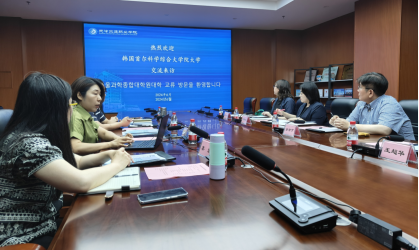 6月28日下午,韩国首尔科学综合大学院大学代表访问beat365,beat365官网中文国际交流部协同轨道与航空学院、物流工程学院接待来宾并举行会谈。