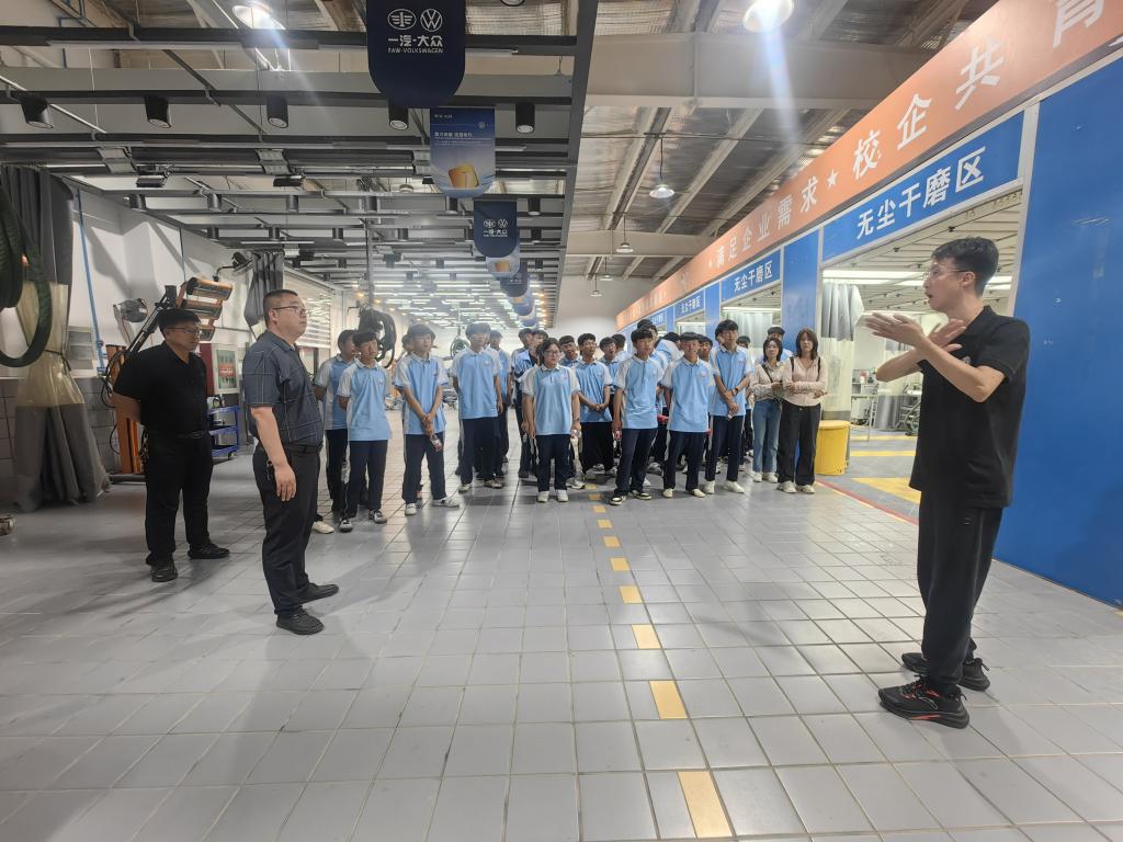 师生们参观了教学楼、图书馆、运动场、汽车实训中心。在华为问界培训中心了解新能源汽车的关键核心技术和未来发展趋势;在钣喷实训中心了解汽车维修与绿色低碳的前沿技术;在新能源汽车整车实训室体验新能源汽车VR虚拟仿真设备,感受技术迭代带来的学习领域变革;在鲁班工坊实训中心,亲身体会智能网联汽车的模拟驾驶,领会汽车工程领域的前沿技术和技能需求、激发学生们学习动力,开启了学生职业规划和未来发展的新篇章。