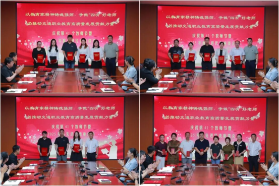 秋韵荡漾,硕果飘香。9月10日上午,学院隆重举行庆祝第41个教师节暨2025年度先进代表座谈会。会议以“以教育家精神铸魂强师,争做‘四有’好老师,为推动交通职业教育高质量发展贡献力量”为主题。学院领导班子、相关职能部门负责人、二级学院支部书记以及受表彰的各类先进代表齐聚一堂,共庆节日、共话育人、共谋发展。